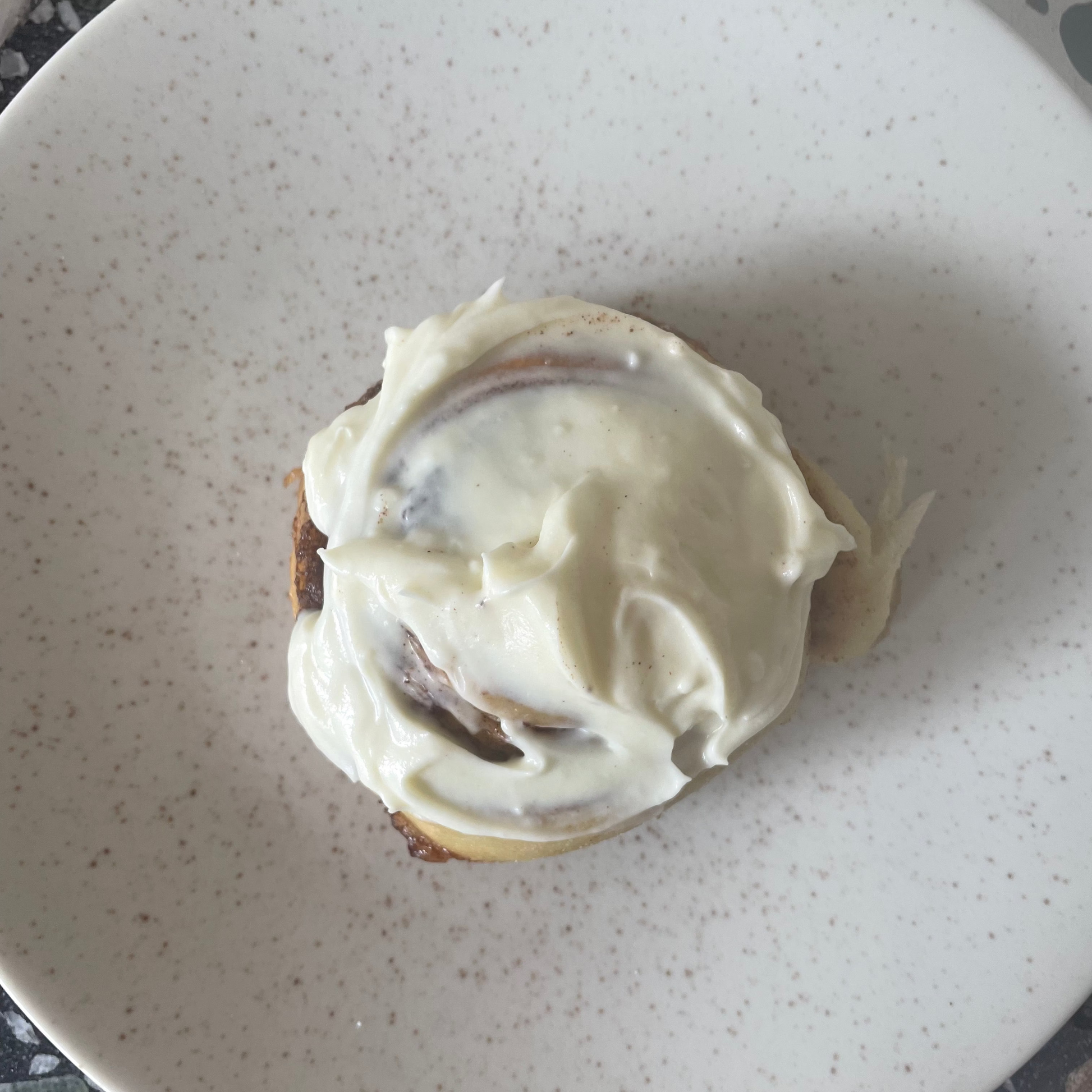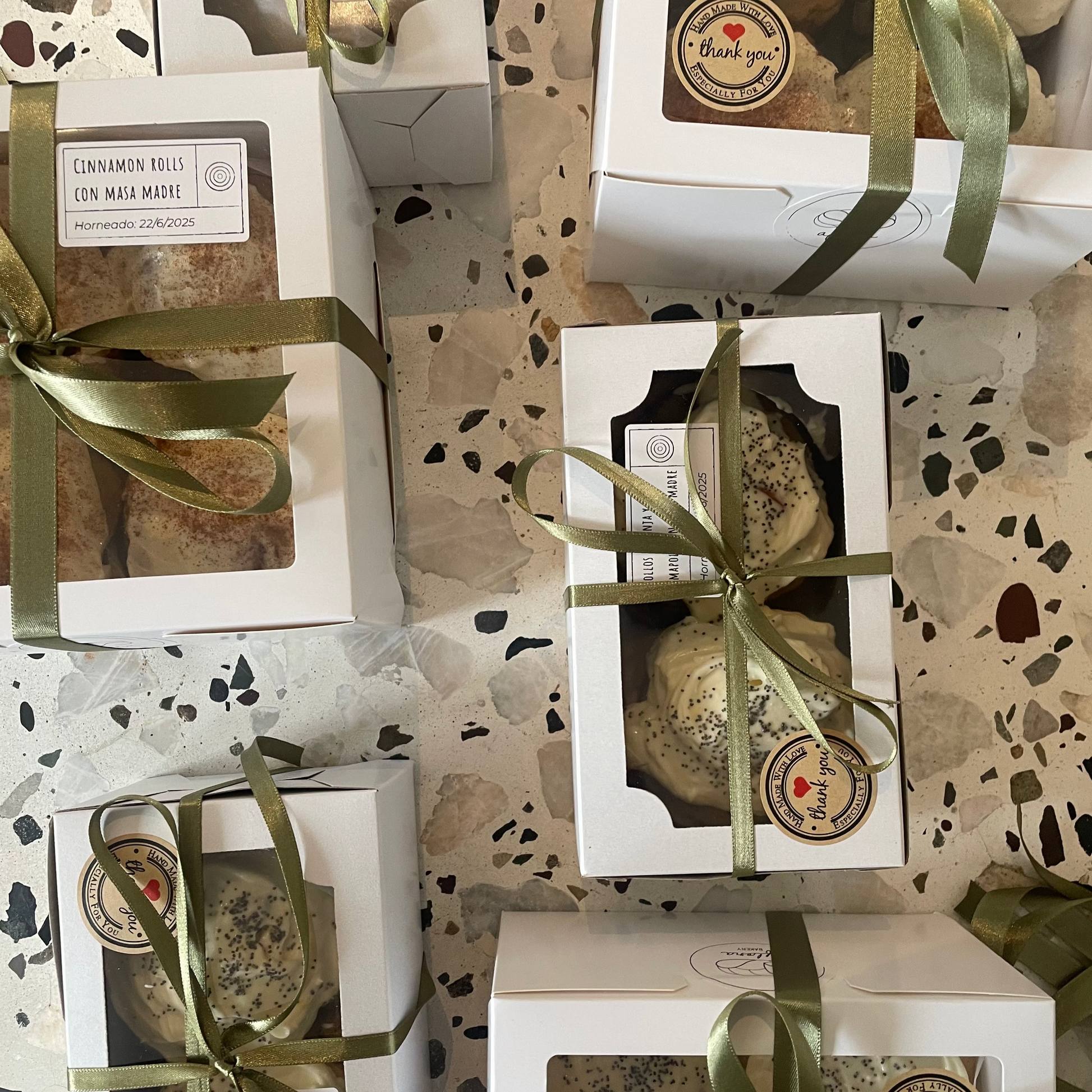Rollos tradicionales de canela, hechos 100% con masa madre y harina orgánica de trigo. Terminados con topping de queso crema y vainilla.