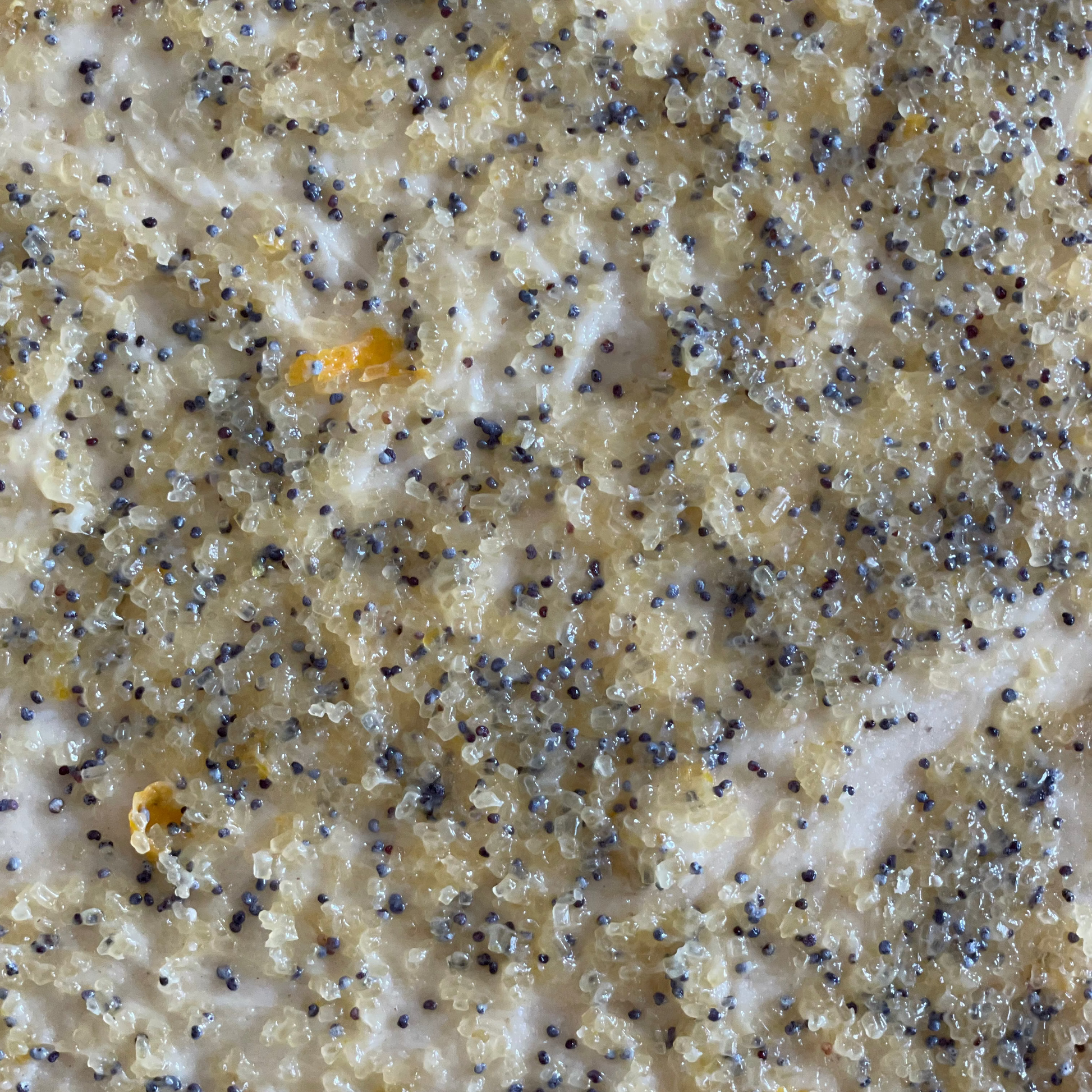 Ingredientes: Harina de trigo, azúcar, huevos, leche, naranja, amapola, masa madre, sal. Topping: Queso crema, vainilla, azúcar